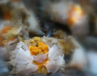 路过本市有名的菜市场,顺手拎了一兜加上一兜新鲜大枣,几只生猛大蓝蟹,一只冻鸭子,两节藕,一只蹄胖,都是应节的,不过中秋好象早过了