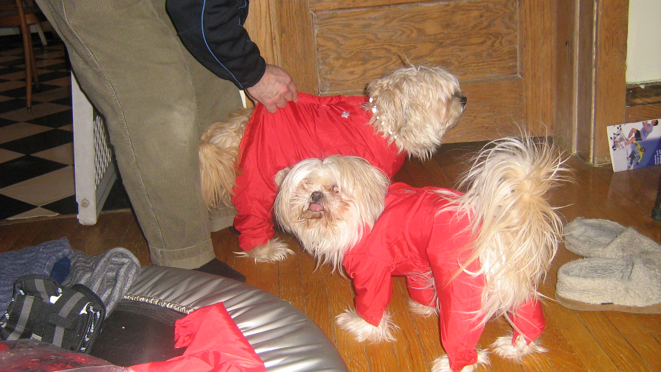 | Titiles for the first picture is "Grooming time for Warp" 2nd picture is Speed Warp and Megabyte and third picture is Xmas is coming and Santa dogs are ready. |