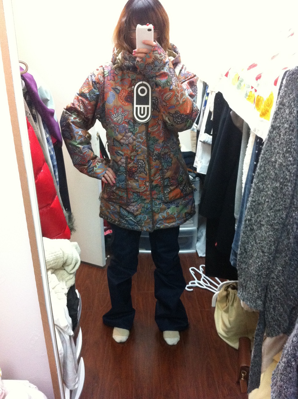 | 衣服好像是滑Snowboard, 不过说回来滑Snowboard 的人大都喜欢穿掉了一半的裤子,衣服也比滑Ski 的人要大一号以上。这是时尚 |